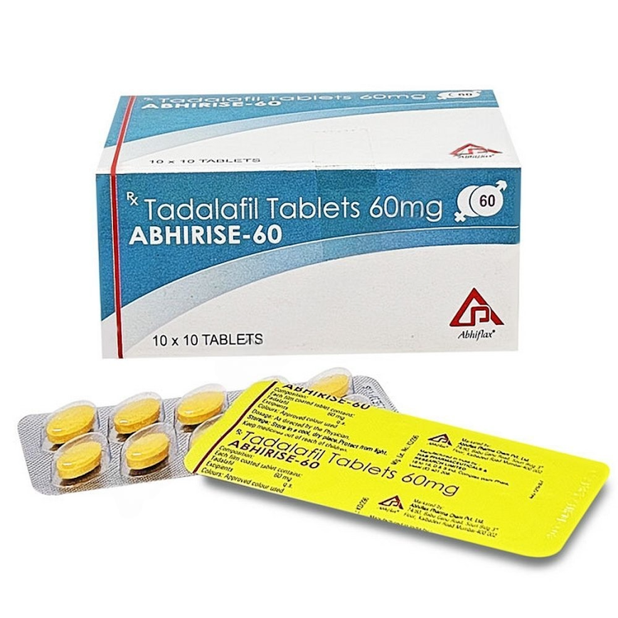 Abhirise 60 mg tablets have benefits. Unlike other ED tablets, this medicine leaves a lasting impact. Tadalafil's functionality is similar to that of Generic Viagra, which stays active for a longer time.