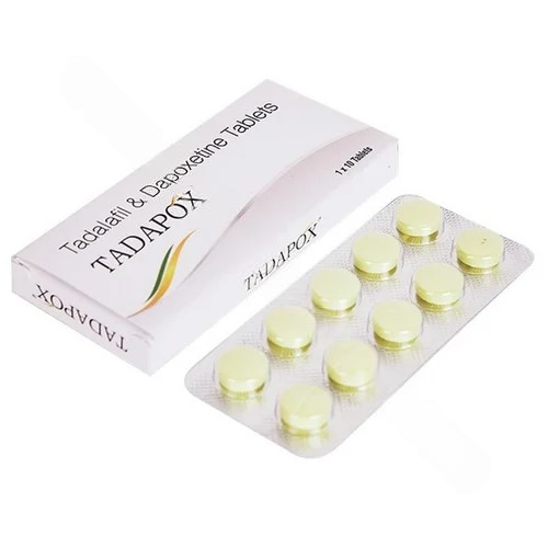 Tadapox tablets contain two active key salts – Tadalafil and Dapoxetine. The components treat erectile dysfunction and premature ejaculation in adult men. The tablet relaxes the muscles of the penile blood vessels and allows an improved blood flow to the penis, allowing a firm erection. Take the medicine under your doctor’s prescription.